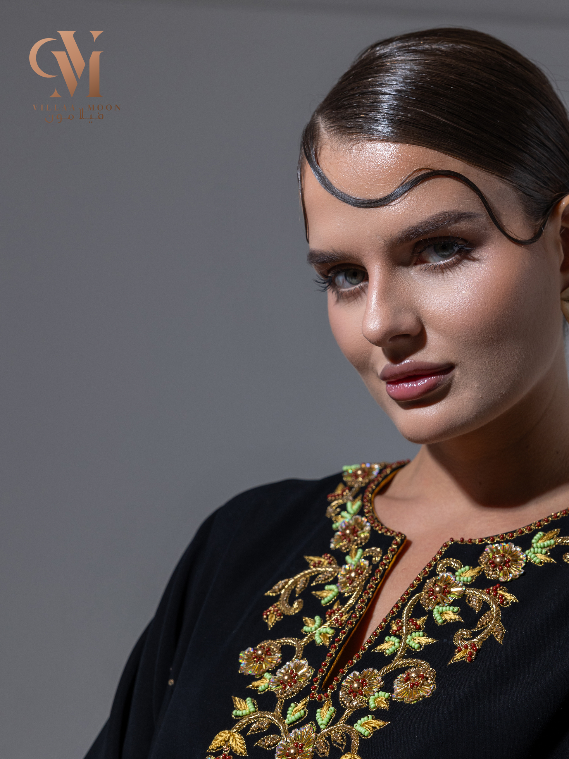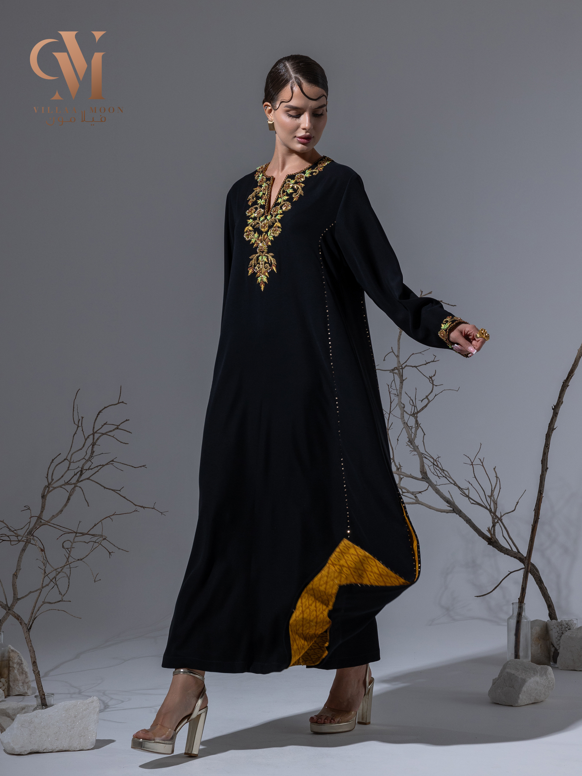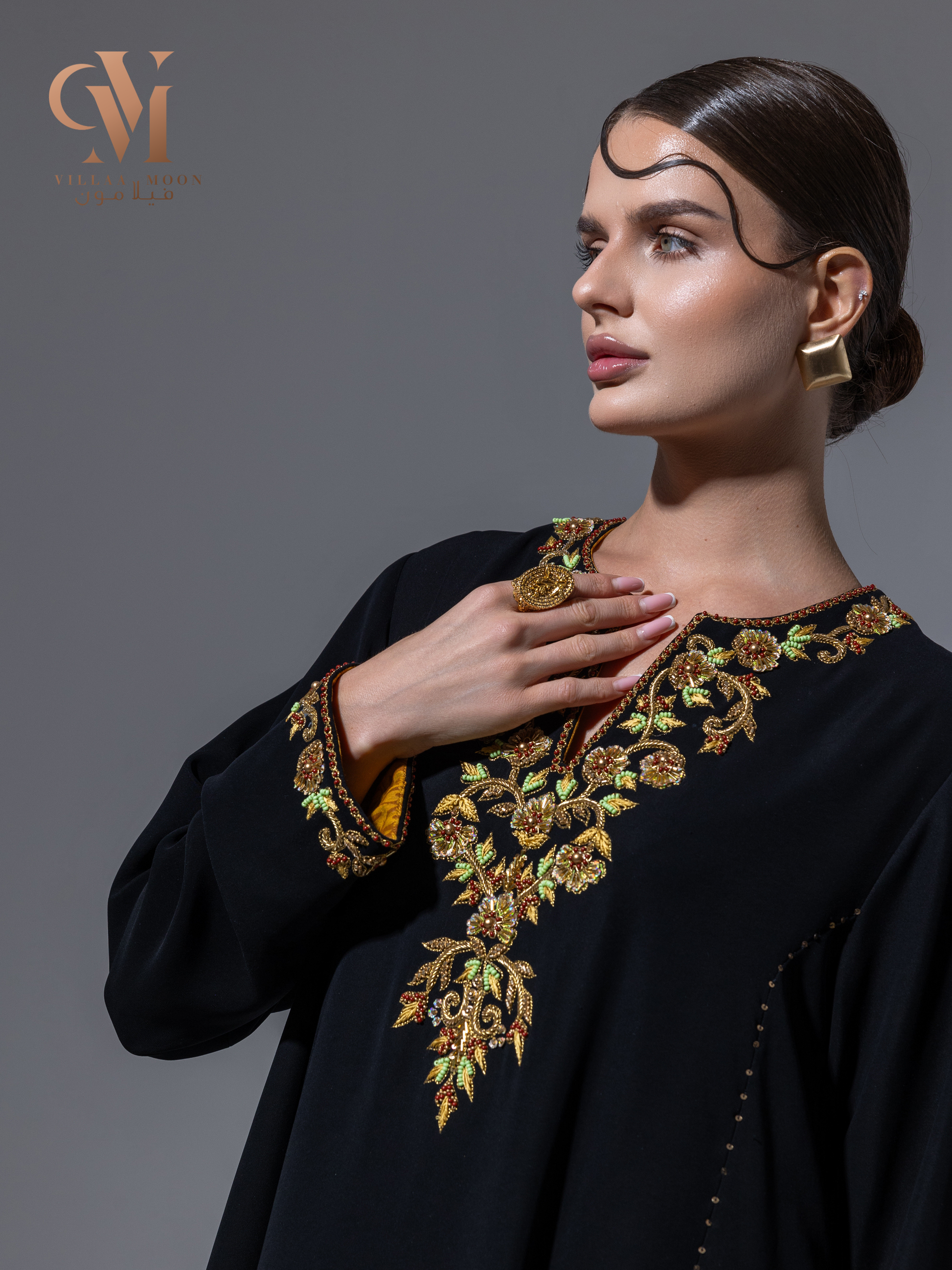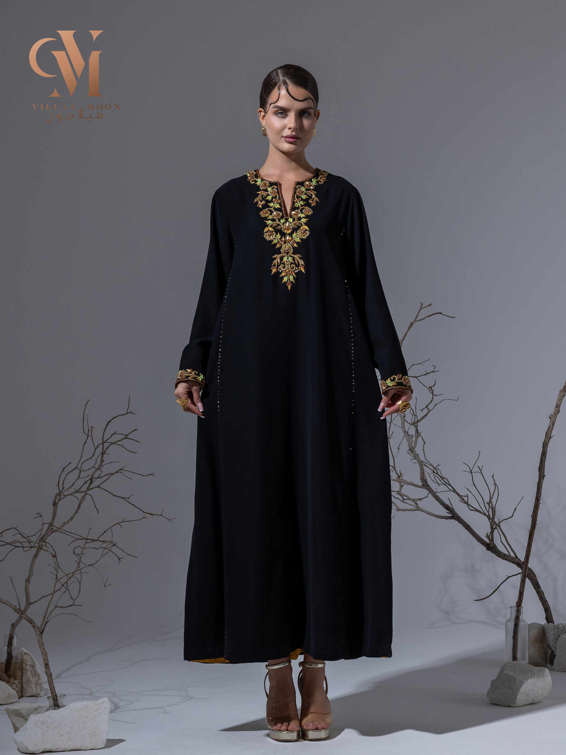 دراعة قماش الكريب الياباني بتطريز خاص بالخيوط والخرز السيرما البارز
