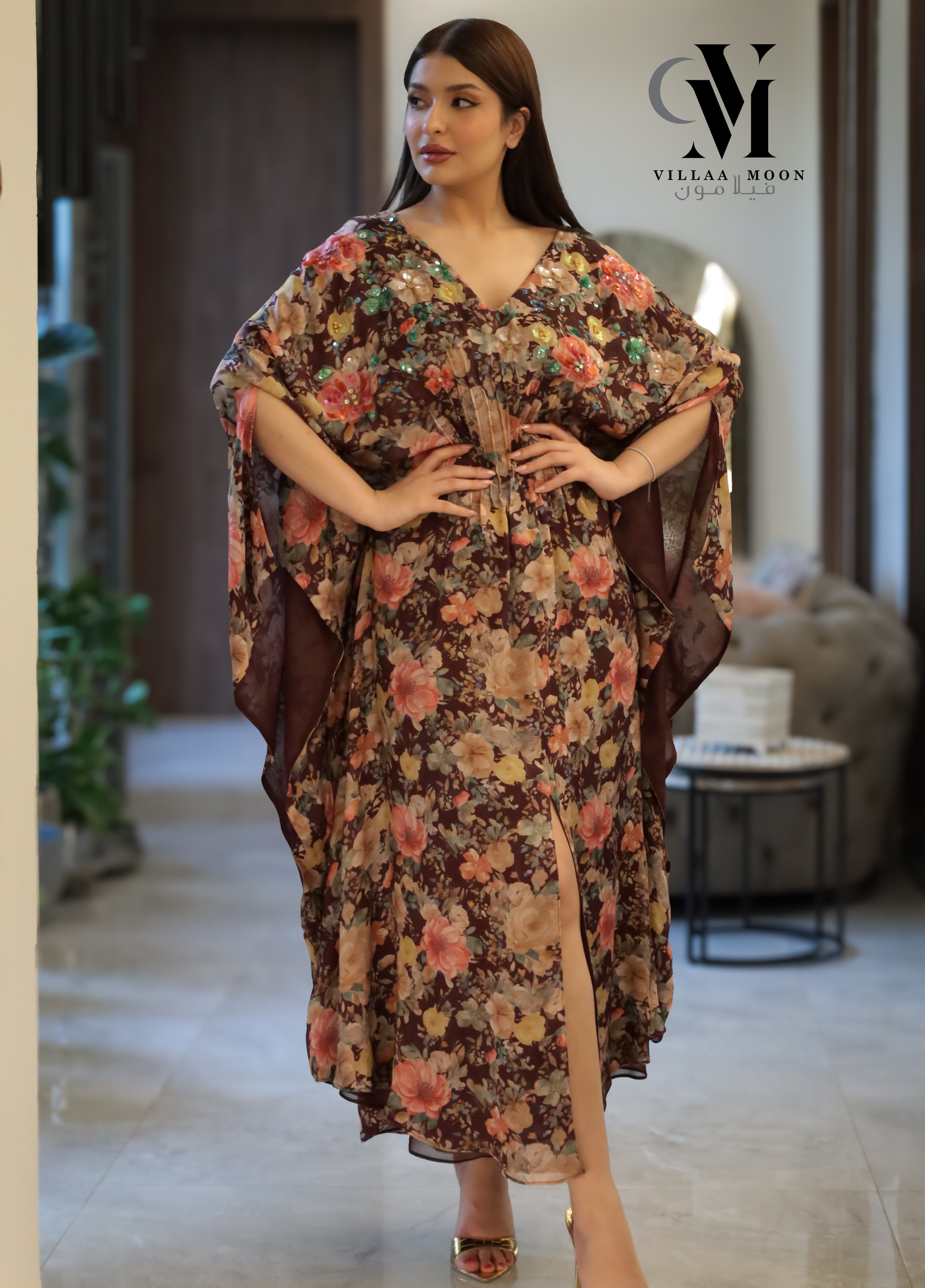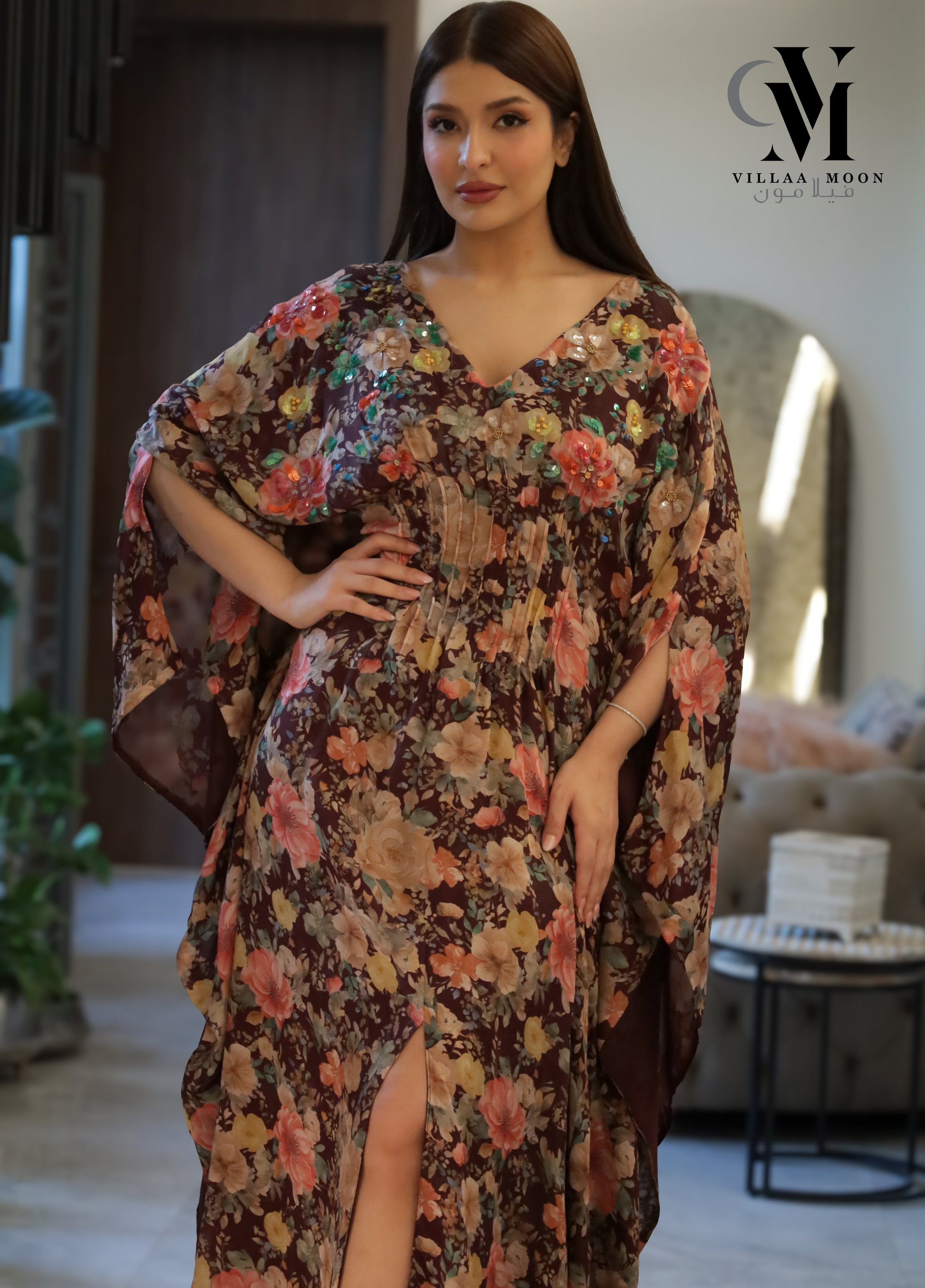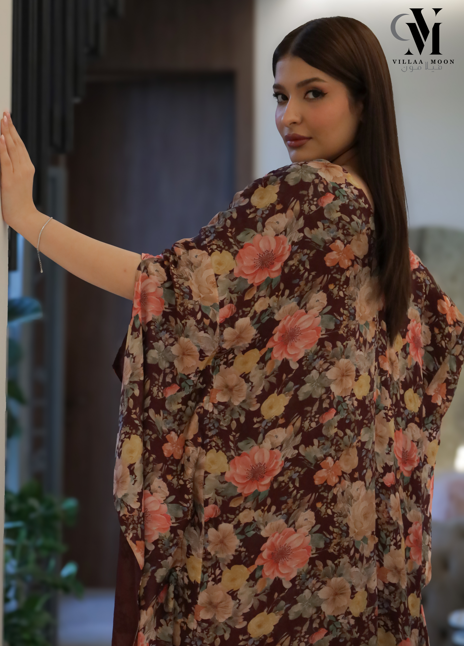 دراعة شلاح شيفون من القماش الحرير المشجر مشكوك من الامام مبطن بشيفون حرير