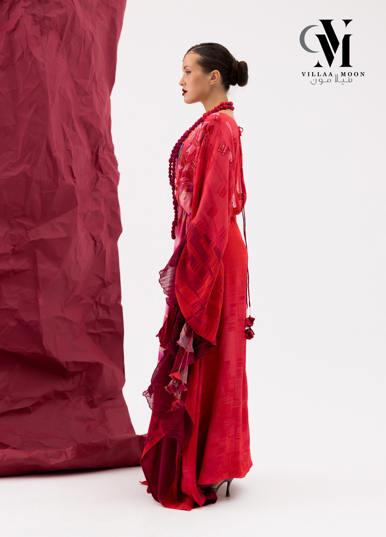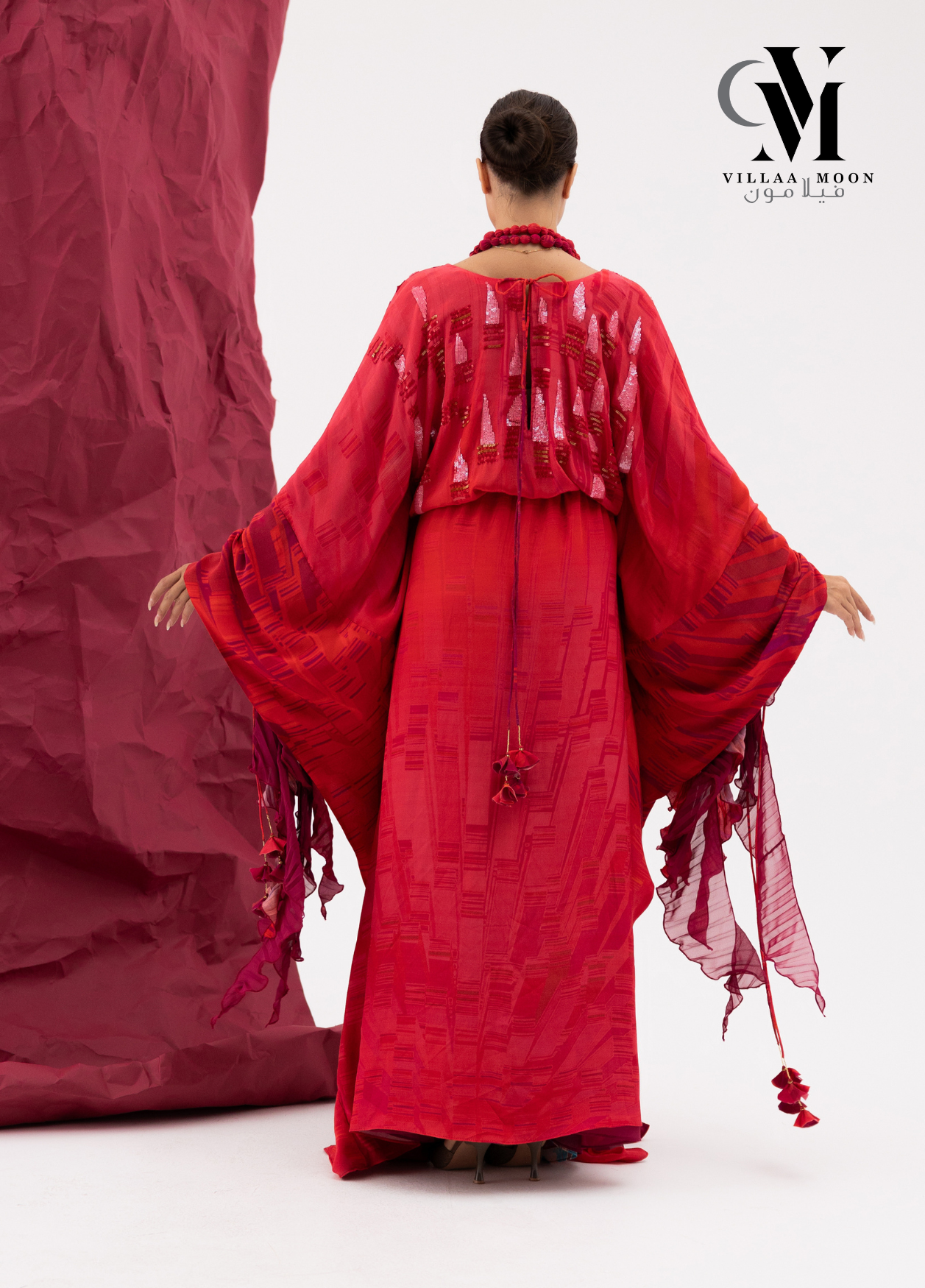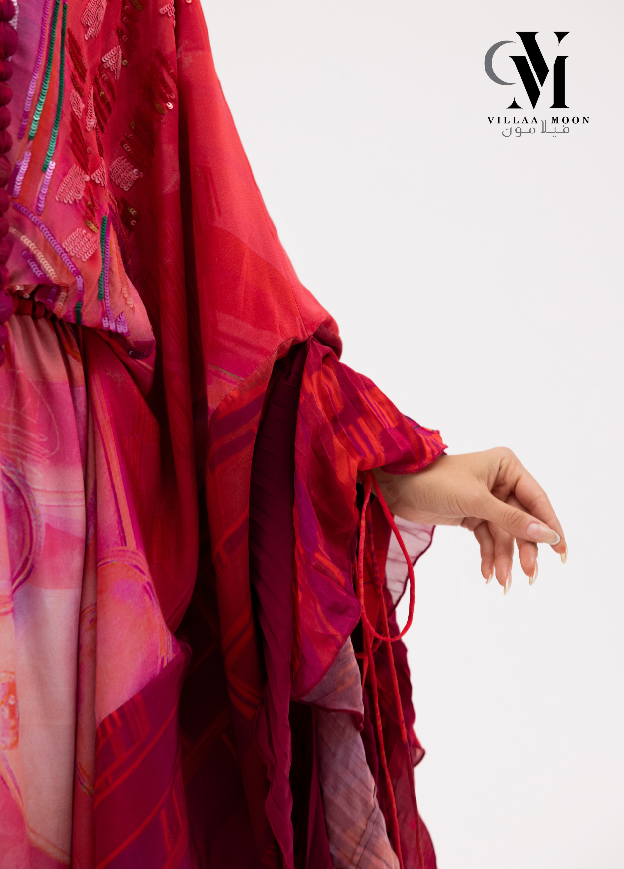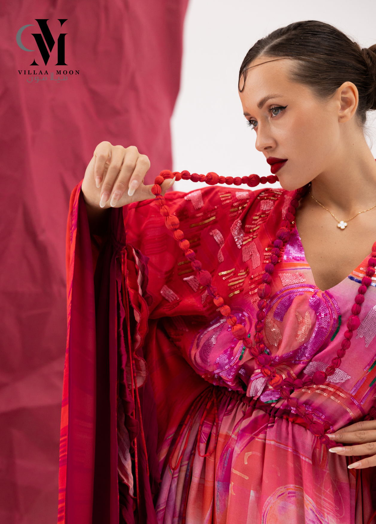 عباره دراعه شلاح ذو موديل خاص من قماش الجورجيت الفرنسي المشجر مشغول باليد ذو طابع فاخر