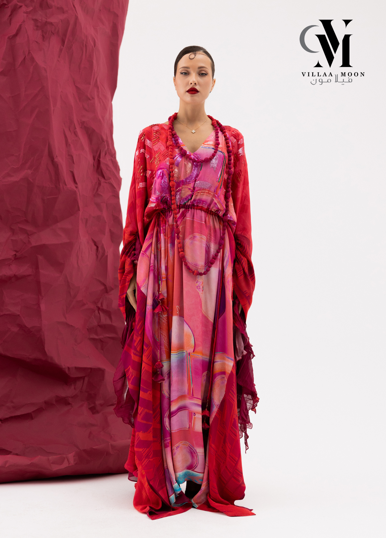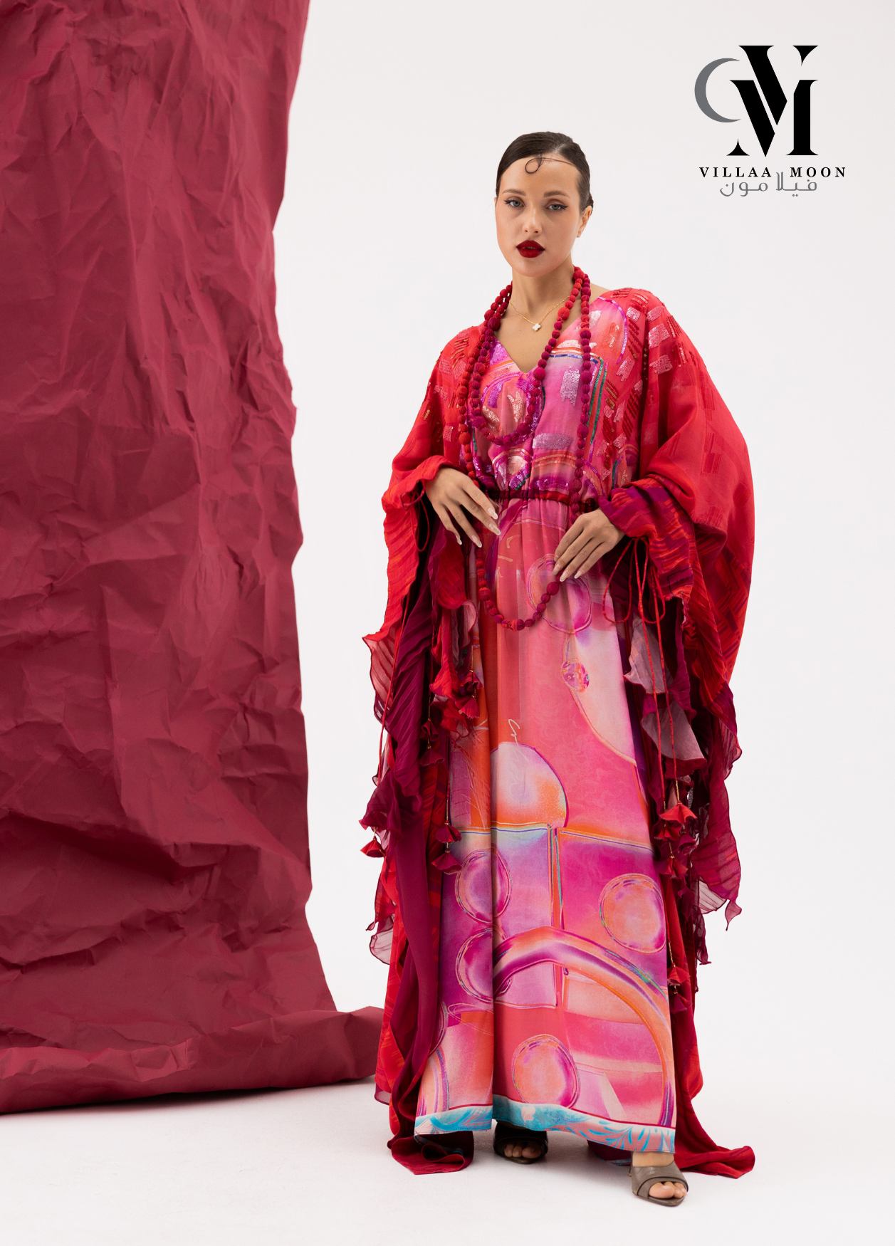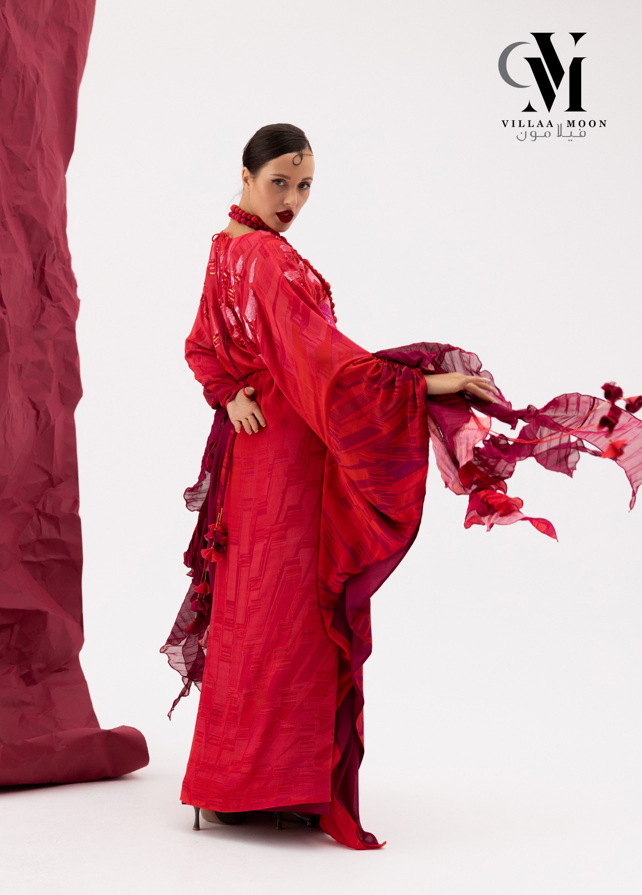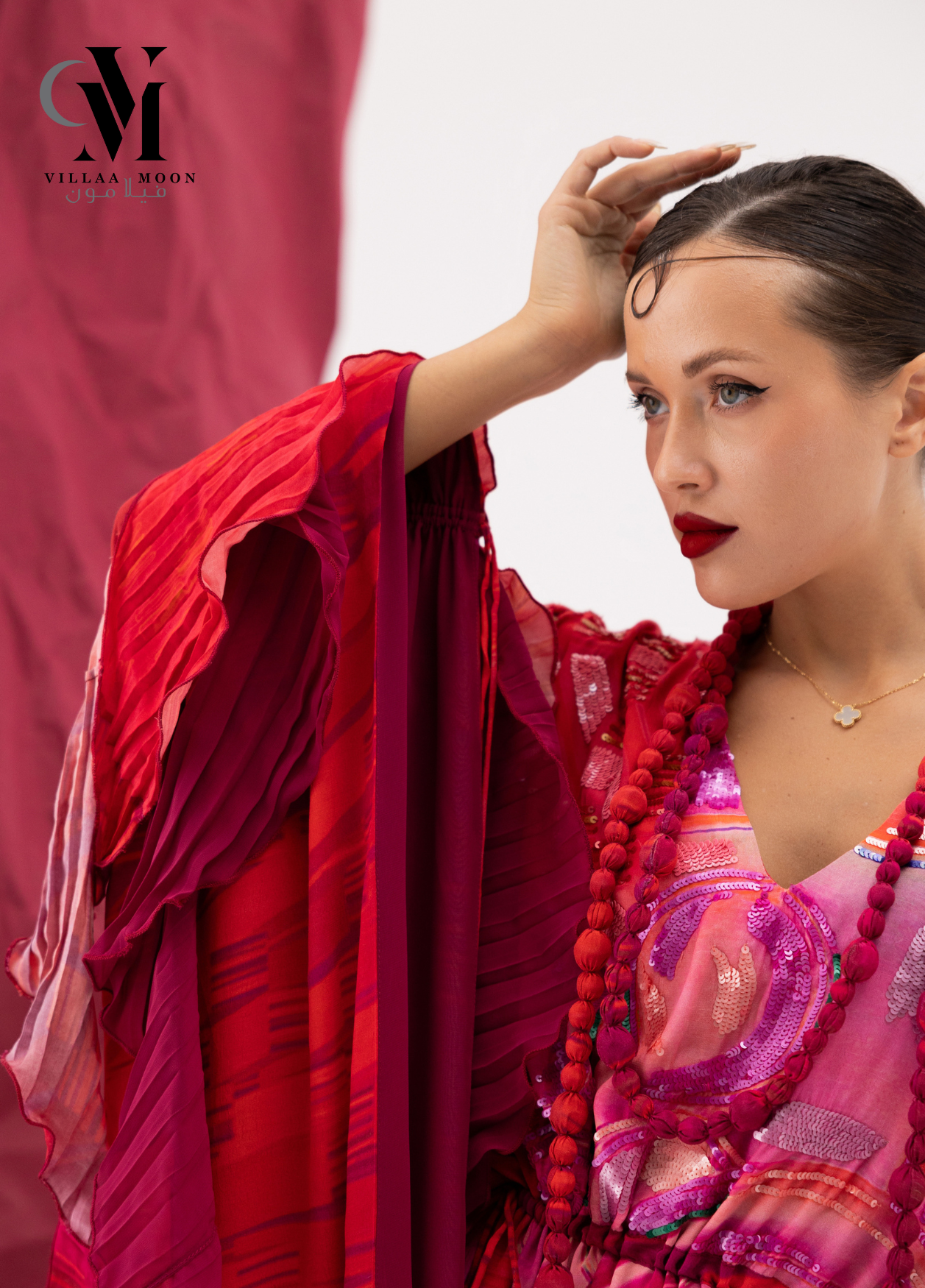 عباره دراعه شلاح ذو موديل خاص من قماش الجورجيت الفرنسي المشجر مشغول باليد ذو طابع فاخر