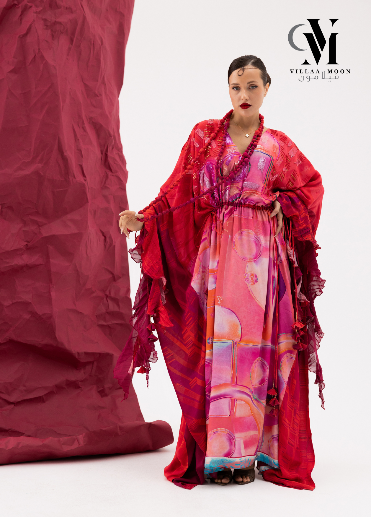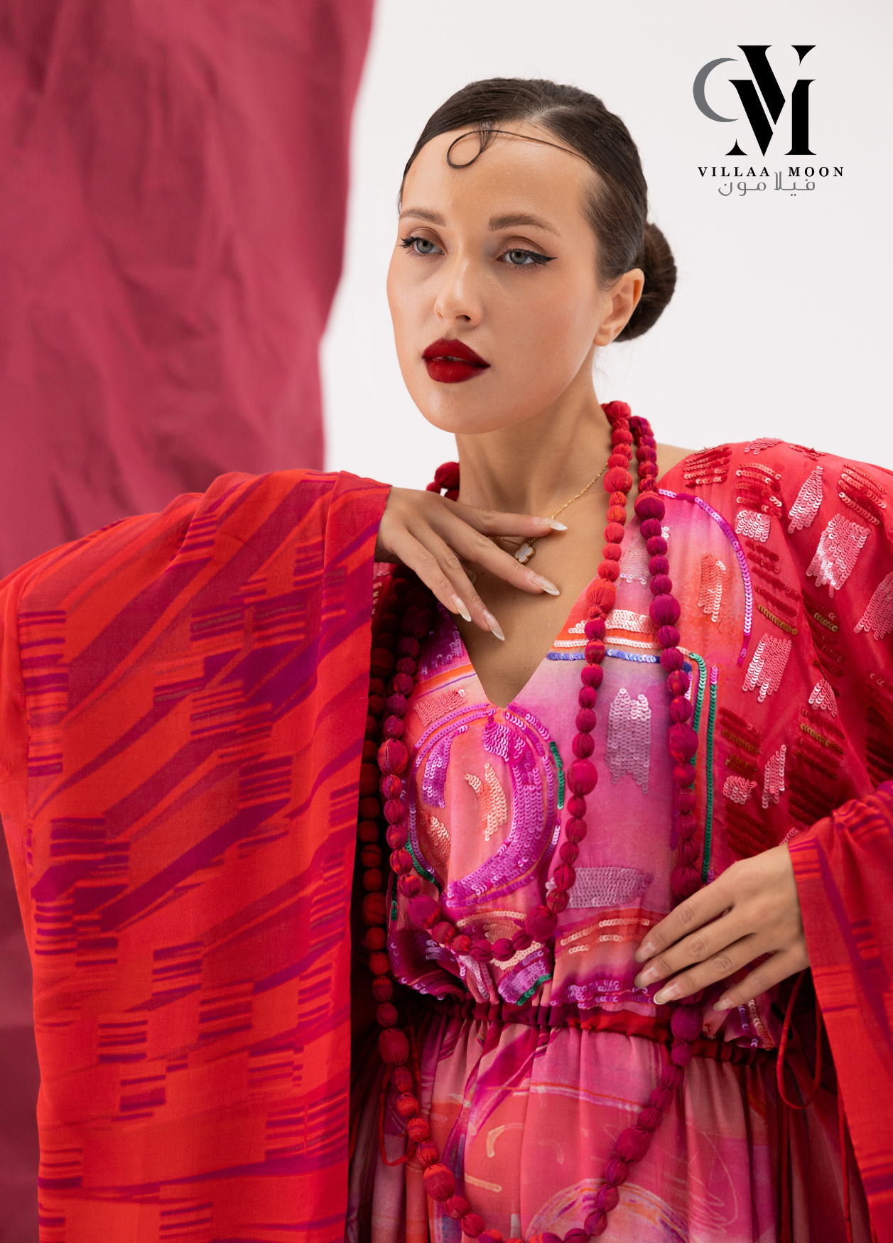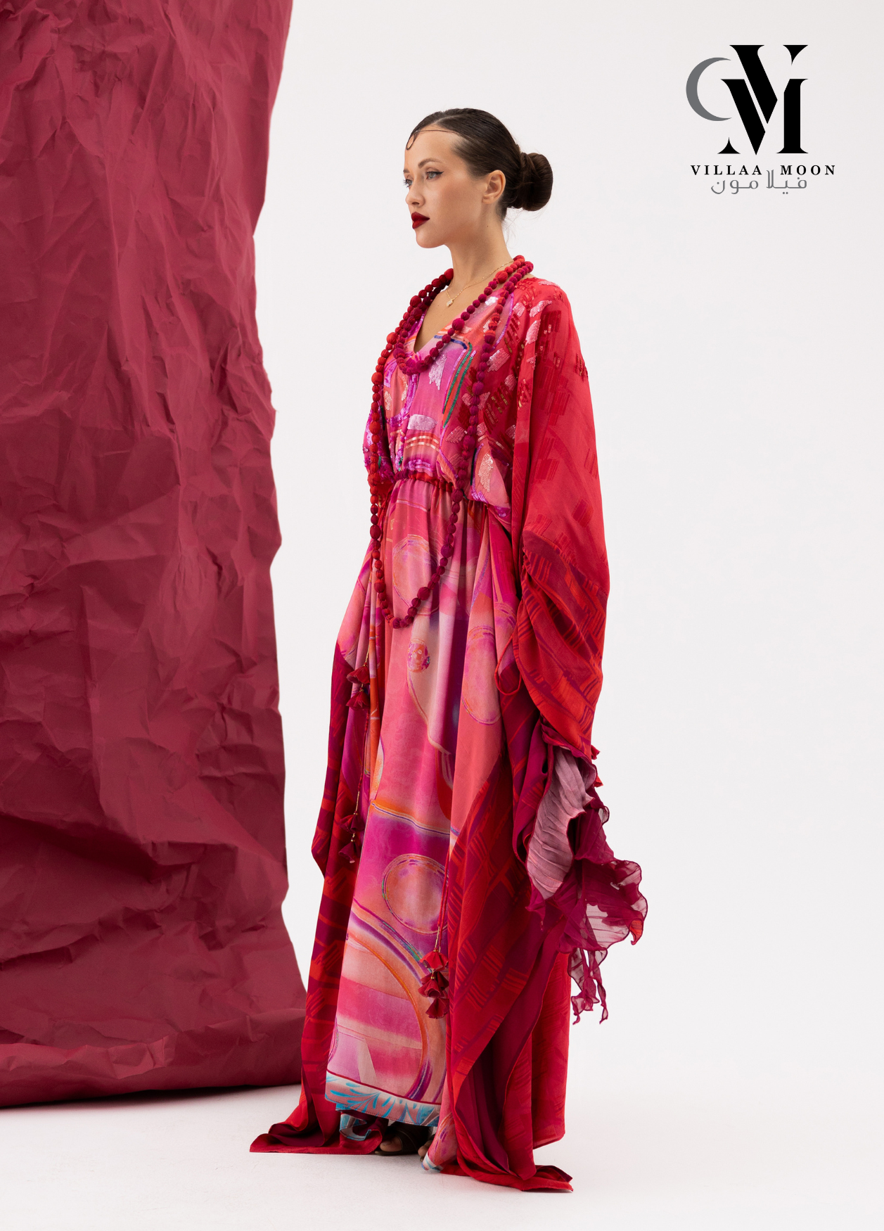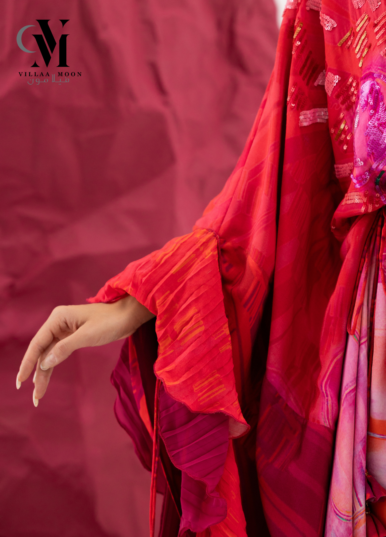 عباره دراعه شلاح ذو موديل خاص من قماش الجورجيت الفرنسي المشجر مشغول باليد ذو طابع فاخر