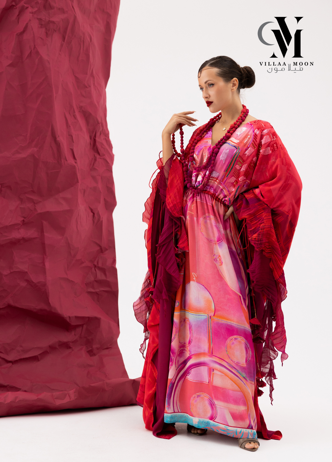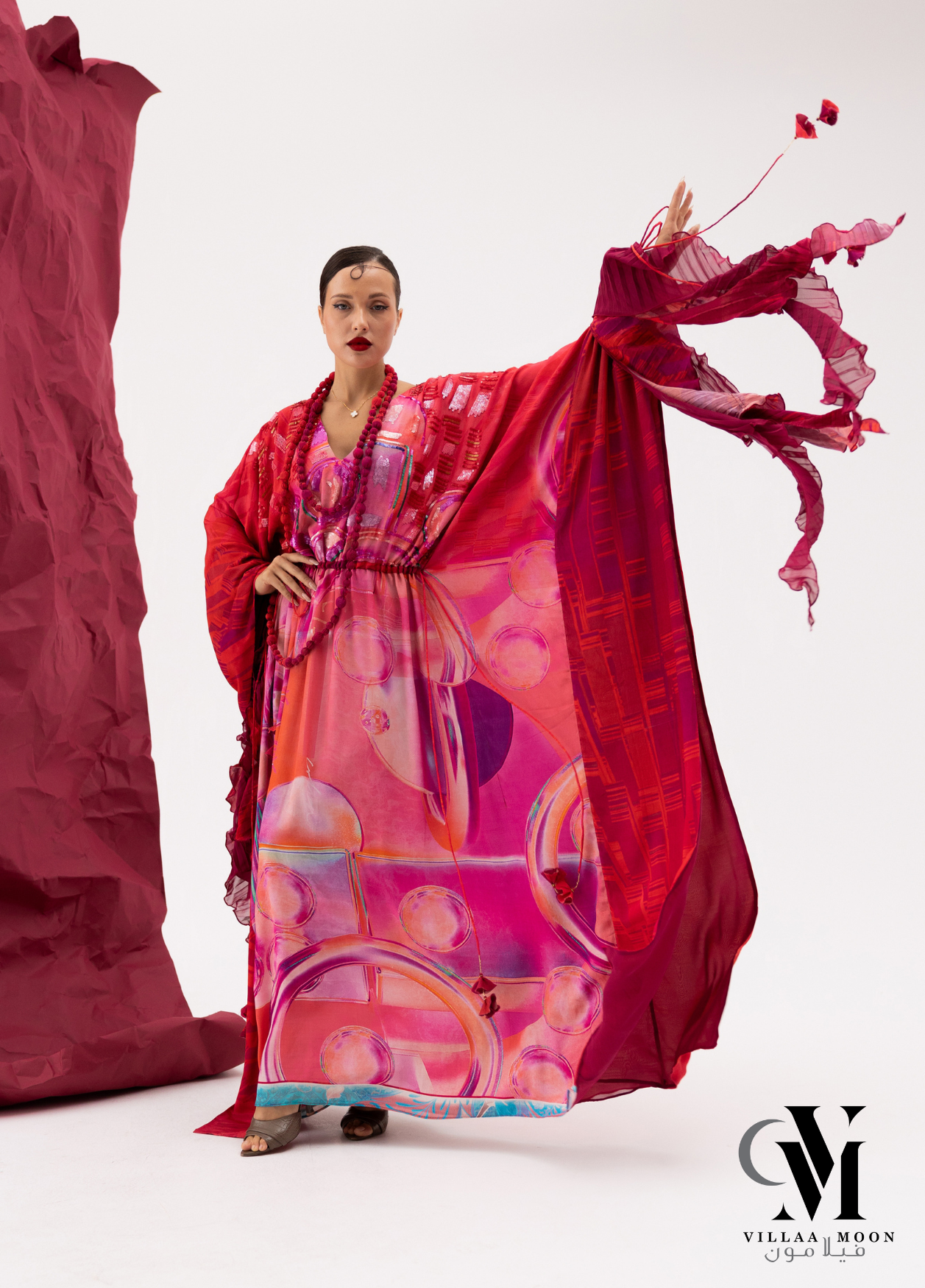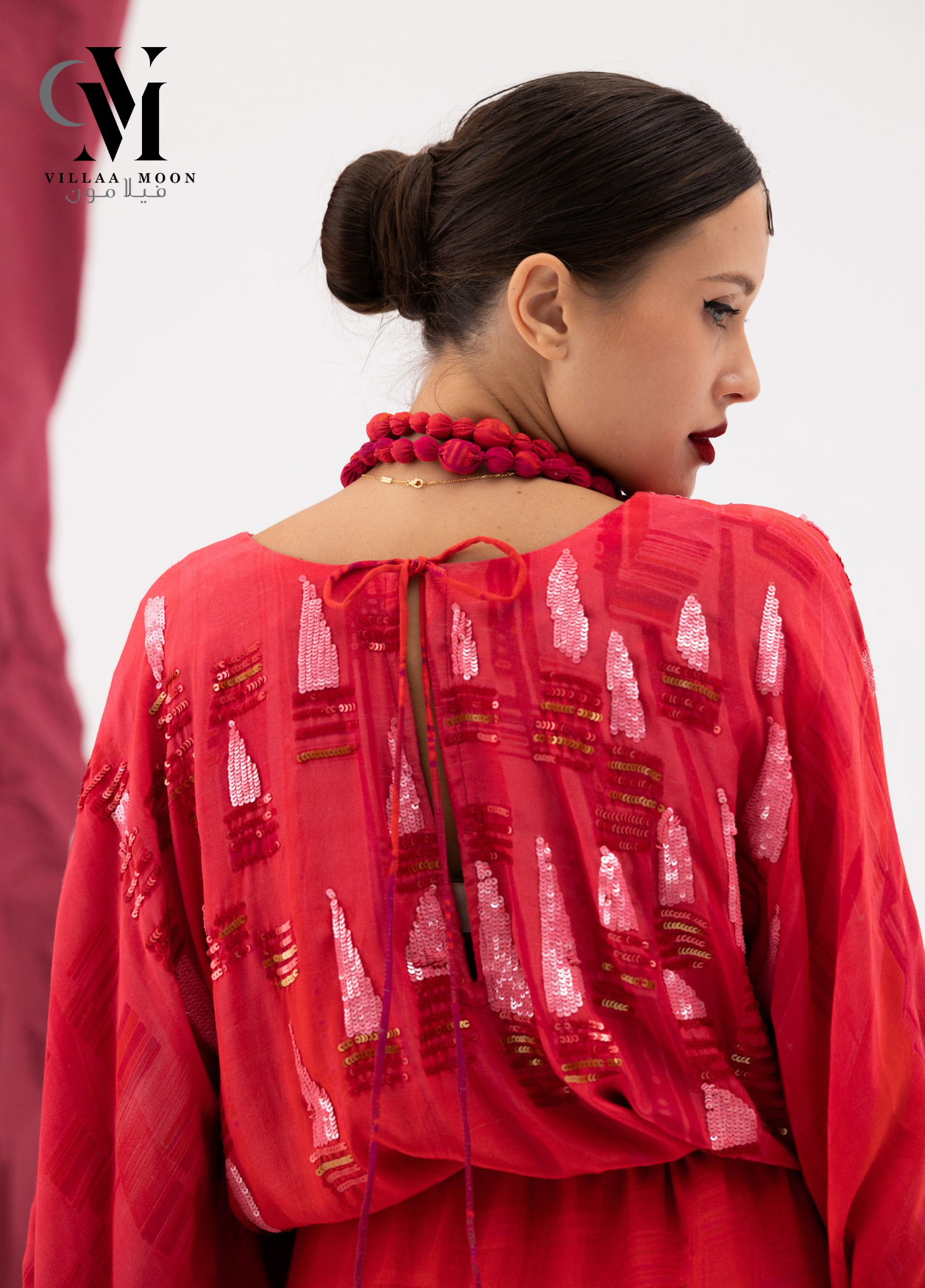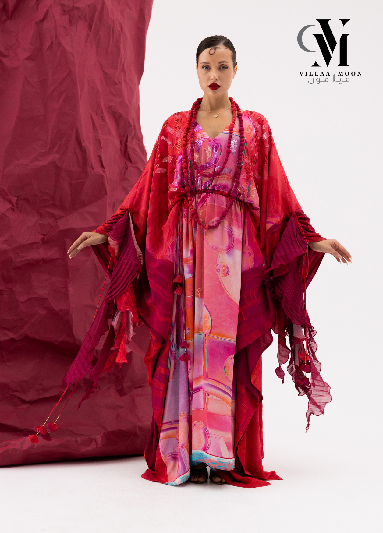 عباره دراعه شلاح ذو موديل خاص من قماش الجورجيت الفرنسي المشجر مشغول باليد ذو طابع فاخر