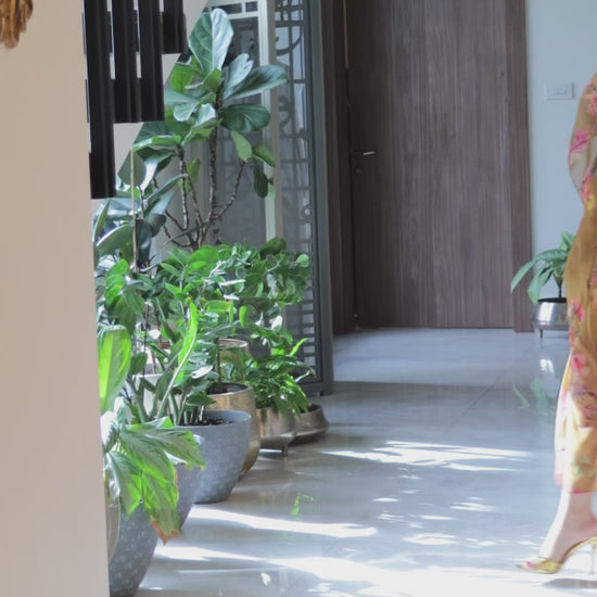 بدلة عباره عن تنوره لف مع بلوزه موديل سكارف طويل من قماش الاورغنزا بالطبعه الخاصه بنا