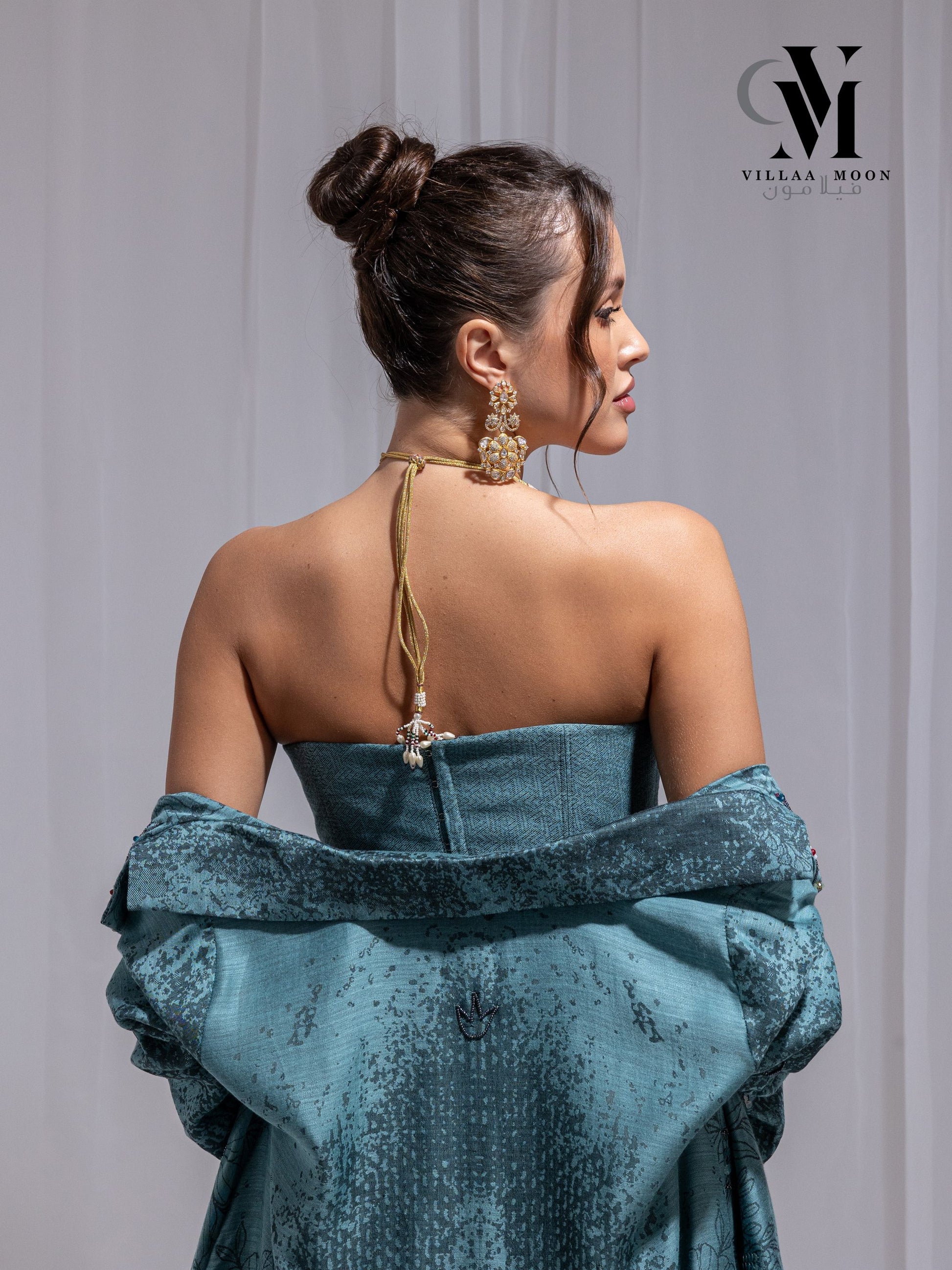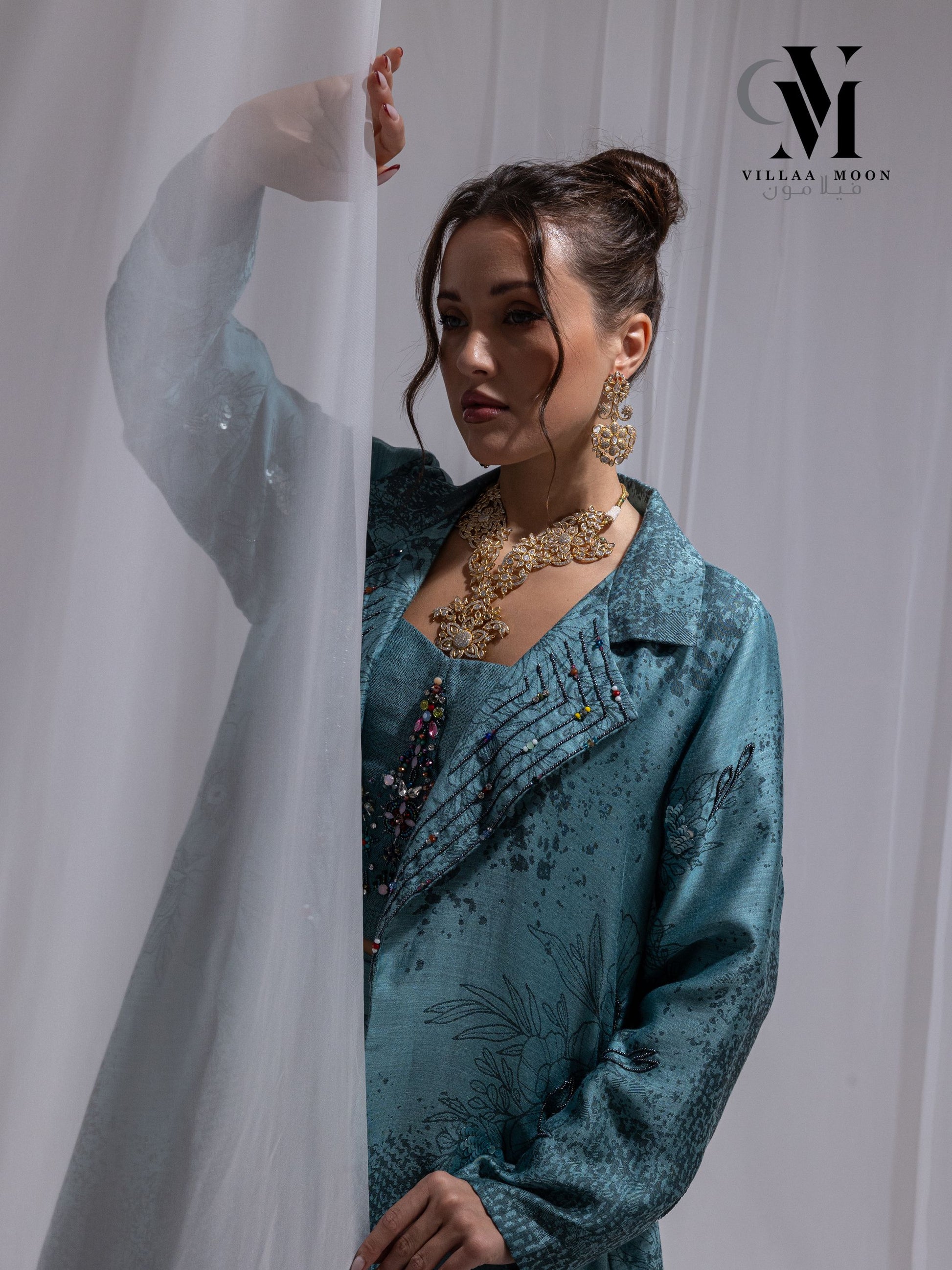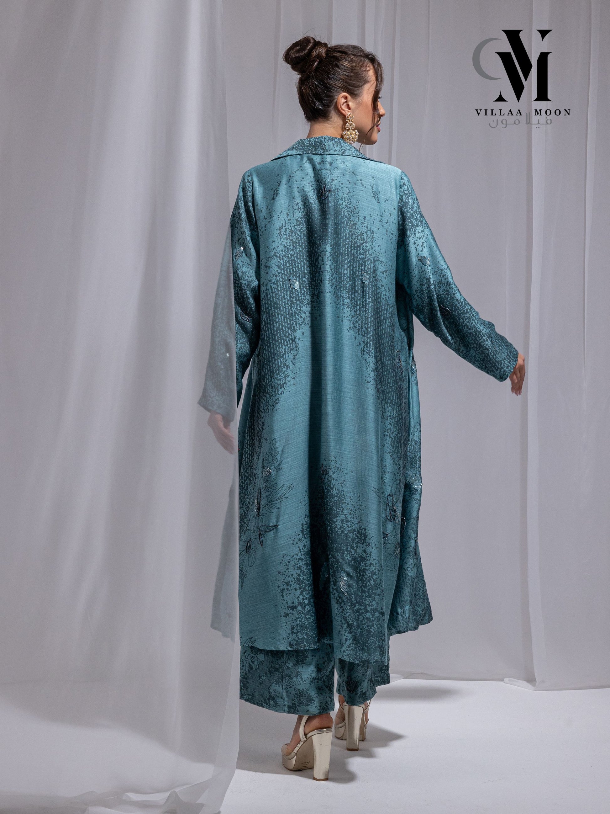 بدلة من قماش الحرير القطن الهندي ذو اللون التركوازي
