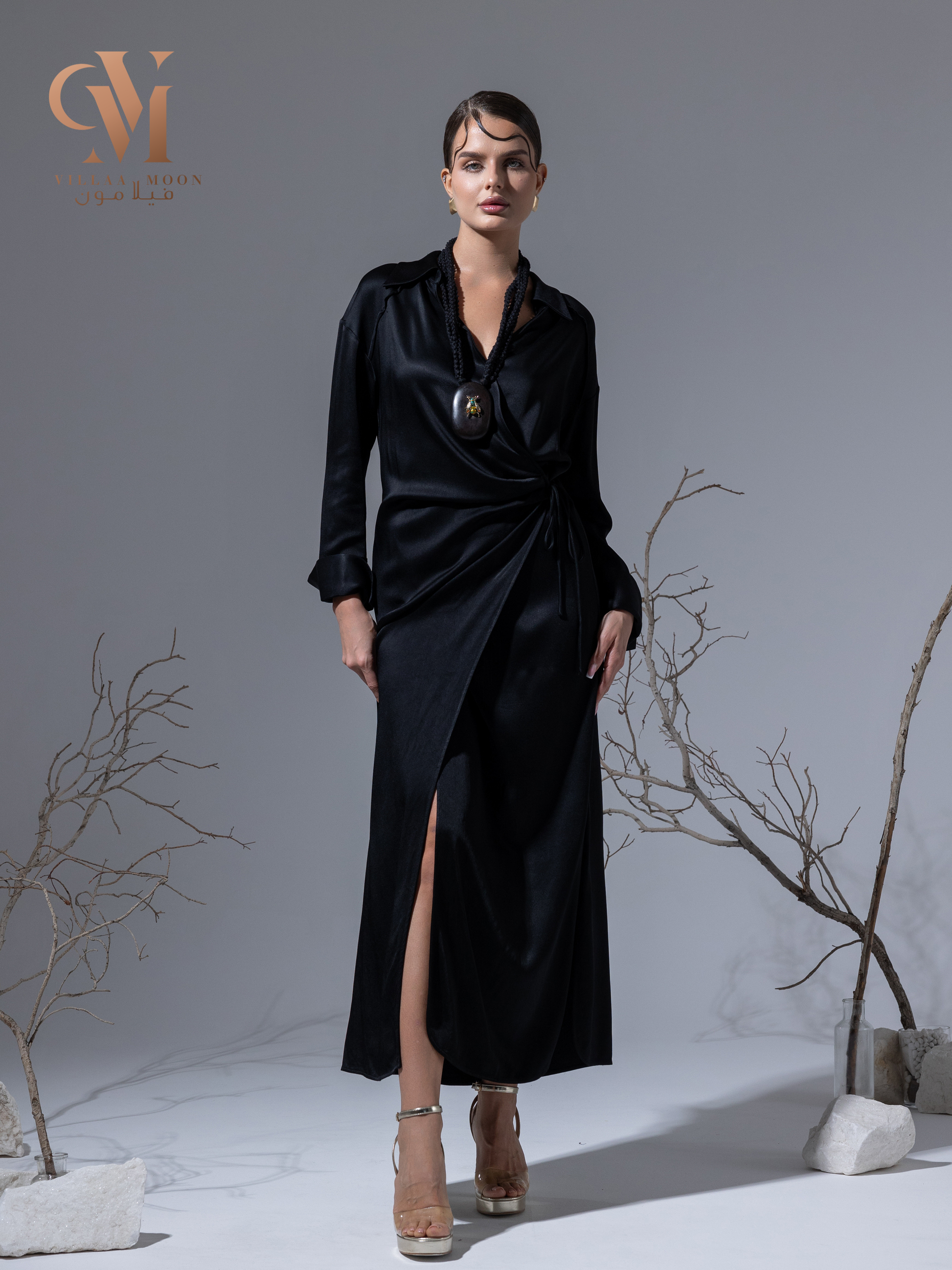 فستان حرير لف موديل خاص من قماش حرير الماني